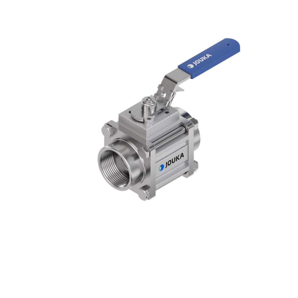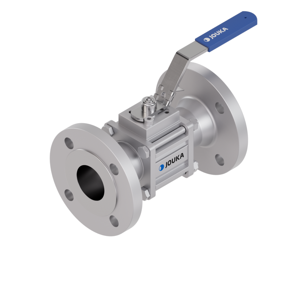 Kroppen på Jouka-kulventilen är tillverkad av korrosionsbeständigt aluminium. Kulventilen är tillverkad av antingen anodiserat aluminium, kolstål med hårdförkromning eller rostfritt stål. Kulventilens säten är tillverkade av PTFE. Den gängade svetshalsen och de lösa flänsarna är tillverkade av aluminium, stål eller rostfritt stål. Flänsdelen på de lösa flänsarna är vanligtvis tillverkad av aluminium. O-ringarna på flänsarna och spindlarna är tillverkade av Viton. Ventilerna finns även med O-ringar av EPDM, NBR eller PTFE.